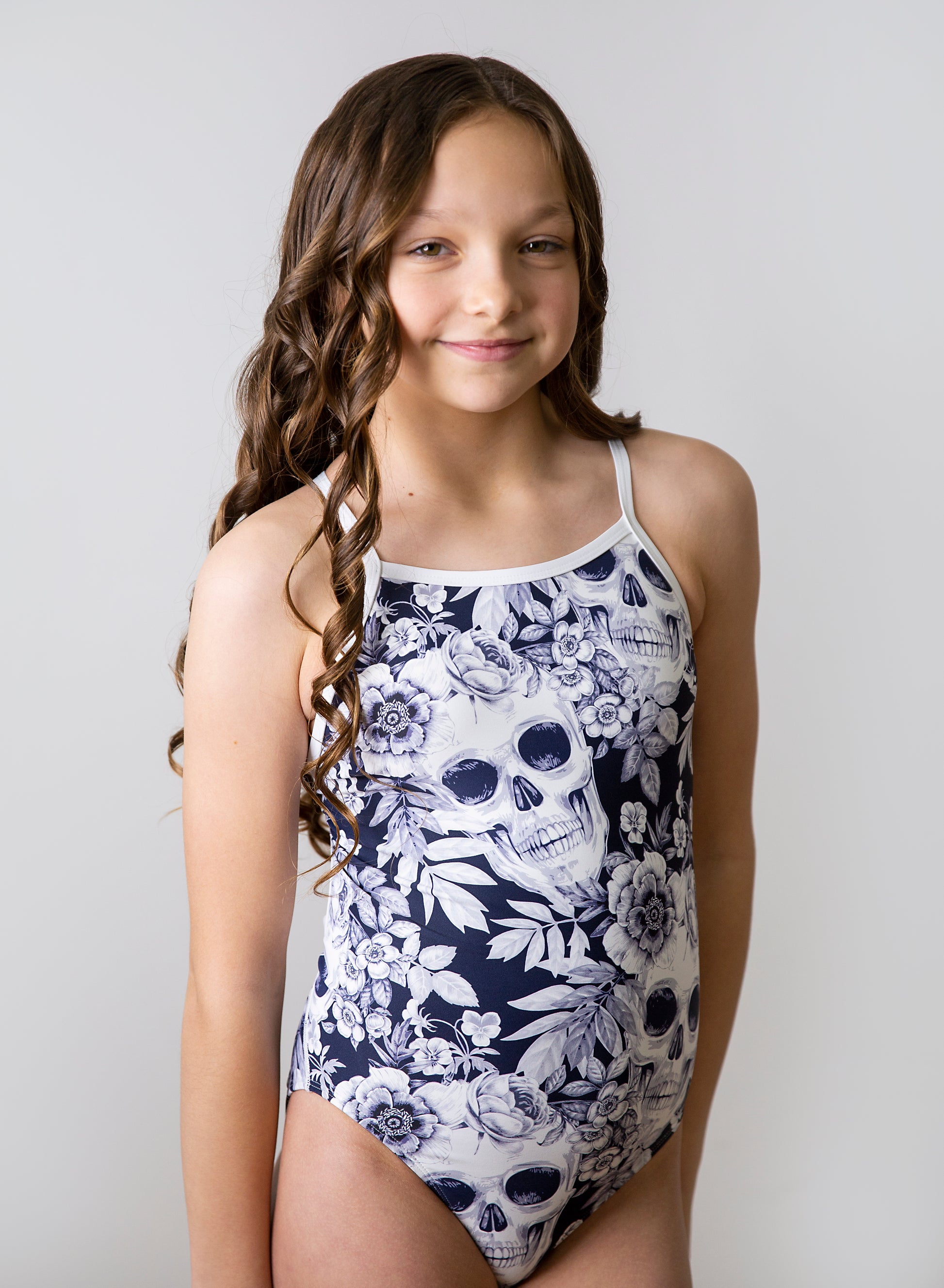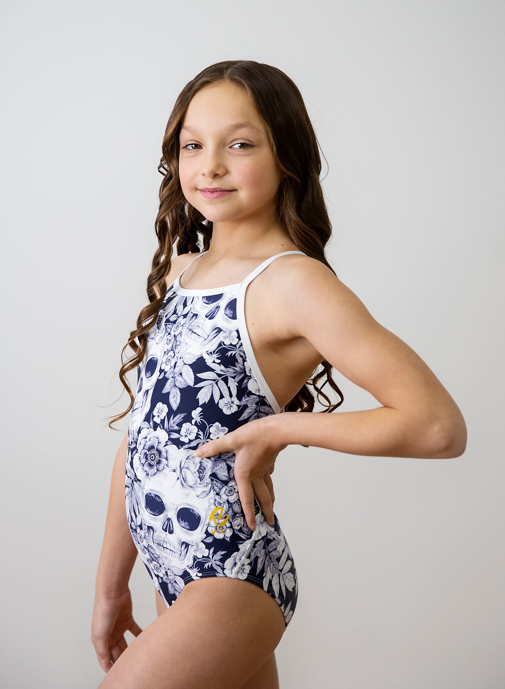 Our original Skulls and Roses Leotard has been restocked and now available in strappy back too! Wear yours as a leotard or as swimwear.